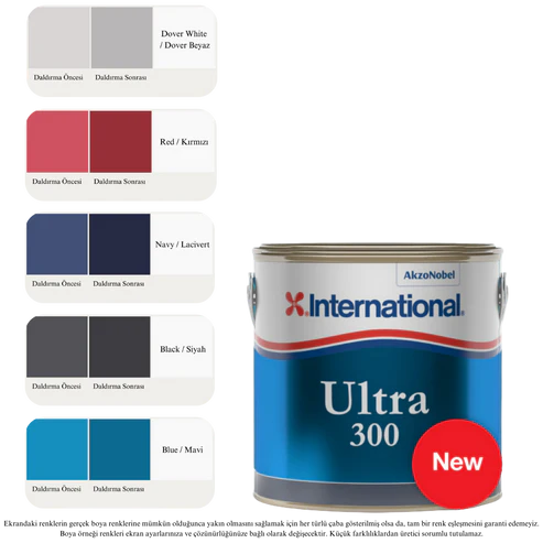 Sudaki tüm canlıların yaratacağı kirletici organizmalara karşı etkili bir antifouling boya. Tatlı ve tuzlu suda kullanılan teknelere profesyonel ve tüketici uygulaması için uygun, Birinci Sınıf Sert Antifouling. Sert, ovulabilir son kat, bir yıla kadar koruma performansı sunar. Ultra 300, suda maksimum kayma için daha pürüzsüz bir son kat sağlayacak şekilde perdahlamaya uygundur ve gerektiğinde ovulabilir ve temizlenebilir. Sürat tekneleri için idealdir.